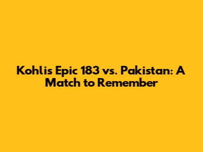 Kohli's Epic 183 Vs. Pakistan: A Match To Remember