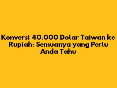 Konversi TWD 40.000 Ke Rupiah: Panduan Lengkap