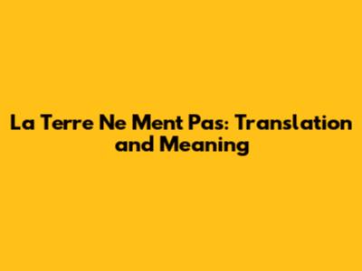 "La terre ne ment pas" is a French expression that literally translates to "The earth does not lie." But like many phrases, the direct translation doesn't always capture the full essence of its meaning. So, what does it really mean?