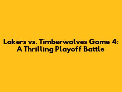 Lakers Vs. Timberwolves Game 4 Showdown