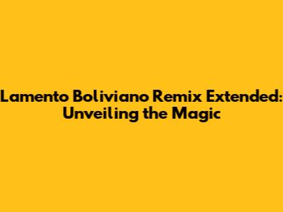 Lamento Boliviano Remix Extended: A Deep Dive