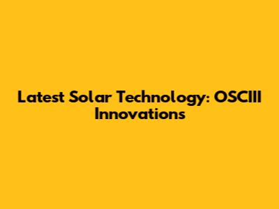 Latest Solar Technology: OSCIII Innovations