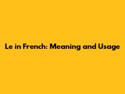 Le In French: Meaning And Usage