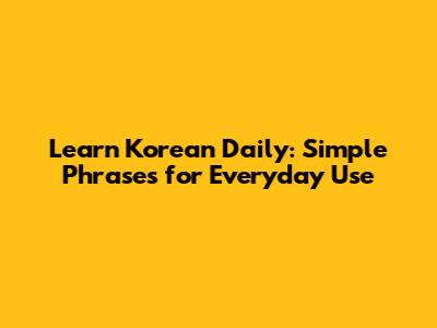 Learn Korean Daily: Simple Phrases For Everyday Use