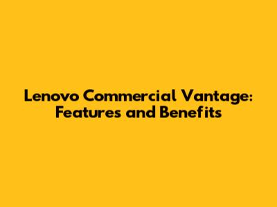 Lenovo Commercial Vantage: Features And Benefits