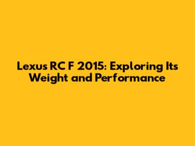 In conclusion, the weight of the Lexus RC F 2015 has a multifaceted impact on its performance. While it may not be the lightest car in its class, Lexus has engineered it to make the most of its weight, delivering a balanced and engaging driving experience.