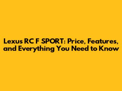 Lexus RC F SPORT: Price, Features, And Everything You Need To Know