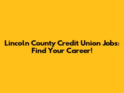 Lincoln County Credit Union Jobs: Find Your Career!