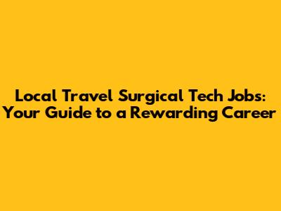Local travel surgical tech jobs offer an exciting and rewarding career path. By combining your surgical skills with the flexibility to explore different facilities and locations, you can create a fulfilling and dynamic career. With the right education, certifications, and a proactive approach to job searching, you can land your dream role and enjoy the many benefits these positions offer. Remember to embrace adaptability, prioritize professionalism, and continuously seek opportunities for growth. Good luck on your journey, and welcome to the exciting world of surgical technology!