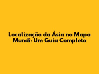 Entender a localização da Ásia no mapa mundi é fundamental para compreendermos a dinâmica global, a diversidade cultural e a importância geopolítica deste vasto continente. A Ásia, o maior e mais populoso continente do mundo, estende-se por uma vasta área geográfica, influenciando significativamente a economia, a política e a cultura global. Neste guia completo, vamos explorar detalhadamente onde a Ásia se encontra no mapa mundial, suas características geográficas marcantes, os países que a compõem e como essa localização afeta o mundo. Se você sempre quis saber mais sobre a Ásia e sua posição no planeta, continue lendo para desvendar todos os segredos e curiosidades deste fascinante continente.