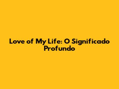 Love Of My Life: O Significado Profundo