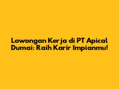 Hey guys! Kalian lagi cari lowongan kerja terbaru di daerah Dumai? Nah, ini dia kesempatan emas buat kalian! PT Apical Dumai lagi buka banyak posisi menarik, lho. Buat kalian yang punya semangat tinggi, skill mumpuni, dan pengen jadi bagian dari perusahaan agribisnis terkemuka, yuk simak info lengkapnya di artikel ini!