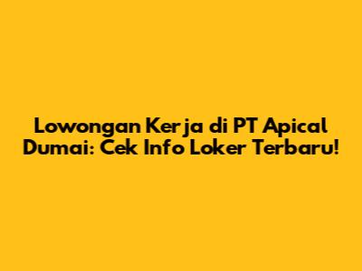 Lowongan Kerja PT Apical Dumai: Cek Info Loker Terbaru!