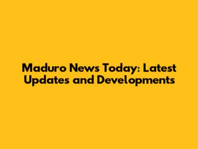 Maduro News Today: Latest Updates And Developments