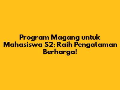 Hai guys! Buat kalian para mahasiswa S2 yang lagi cari pengalaman praktis di dunia kerja, program magang bisa jadi solusi yang super tepat! Magang bukan cuma sekadar formalitas, tapi juga kesempatan emas buat mengasah keterampilan, memperluas jaringan, dan mencuri ilmu dari para profesional di bidang yang kalian minati. Yuk, kita bahas lebih dalam tentang program magang yang cocok buat mahasiswa S2!