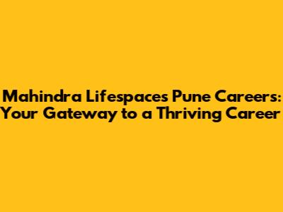 Mahindra Lifespaces Pune Careers: Your Dream Job Awaits!