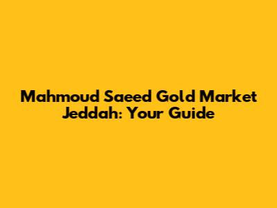 Mahmoud Saeed Gold Market Jeddah: Your Guide