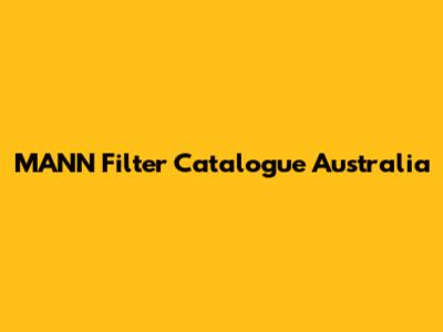 MANN Filter Catalogue Australia: Find Your Perfect Filter