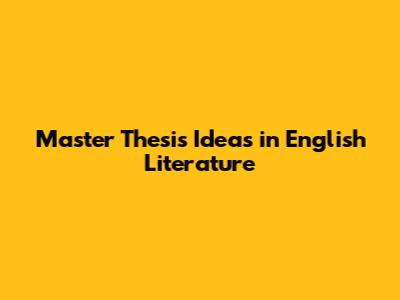 Master Thesis Ideas In English Literature