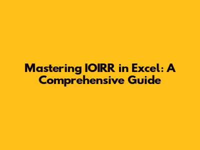 Mastering IOIRR In Excel: A Comprehensive Guide