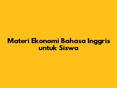 Materi Ekonomi Bahasa Inggris Untuk Siswa