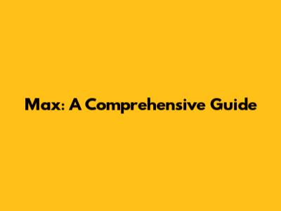 Max: A Comprehensive Guide