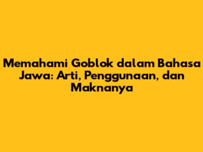 Goblok dalam Bahasa Jawa adalah kata yang sering kita dengar, tetapi apa sebenarnya maknanya? Dalam artikel ini, kita akan menjelajahi secara mendalam tentang arti kata "goblok" dalam bahasa Jawa, penggunaannya dalam percakapan sehari-hari, serta nuansa makna yang terkandung di dalamnya. Kita akan membahas asal-usul kata ini, bagaimana ia digunakan dalam konteks budaya Jawa, dan bagaimana ia berbeda dari kata-kata lain yang memiliki arti serupa. Jadi, mari kita mulai perjalanan kita untuk memahami seluk-beluk kata "goblok" ini!
