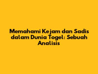 Memahami Kejam Dan Sadis Dalam Dunia Togel: Sebuah Analisis
