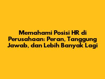 Semoga artikel ini bermanfaat dan memberikan gambaran yang jelas tentang posisi HR di perusahaan. Jangan ragu untuk mencari informasi lebih lanjut dan terus belajar untuk mengembangkan diri di bidang ini. Sukses selalu!