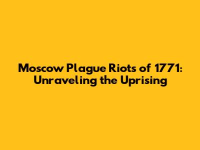 Moscow Plague Riots: Unraveling The 1771 Uprising