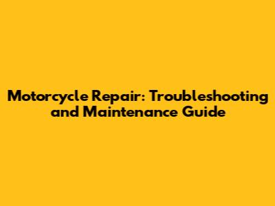 Motorcycle Repair: Troubleshooting And Maintenance Guide