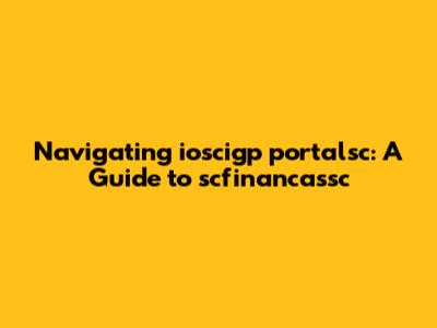 Navigating Ioscigp Portalsc: A Guide To Scfinancassc