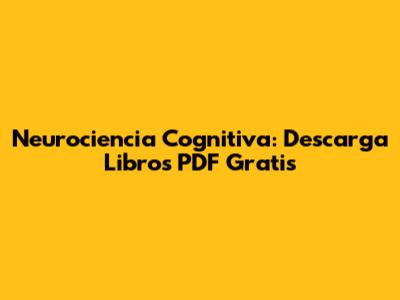 Neurociencia Cognitiva: Descarga Libros PDF Gratis