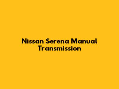 Nissan Serena Manual Transmission: Specs, Issues & Solutions