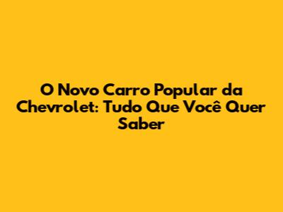 O Novo Carro Popular Da Chevrolet: Tudo Que Você Quer Saber