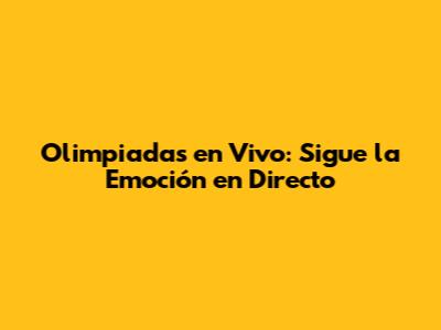 Olimpiadas En Vivo: Sigue La Emoción En Directo