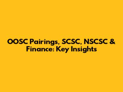 OOSC Pairings, SCSC, NSCSC & Finance: Key Insights
