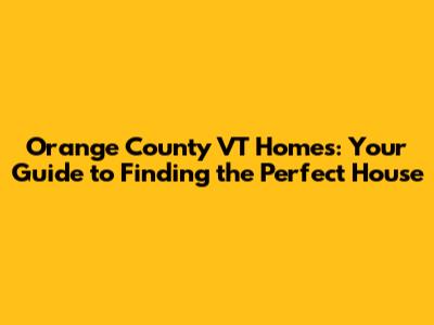 Orange County VT Homes: Your Guide To Finding The Perfect House