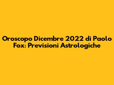 Ehilà , amici appassionati di stelle! Dicembre 2022 è alle porte, e come ogni mese, siamo tutti curiosi di scoprire cosa hanno in serbo gli astri per noi. Chi meglio di Paolo Fox, l'astrologo più amato d'Italia, può guidarci attraverso le previsioni astrologiche di questo mese? Preparatevi, perché andremo a sviscerare l'oroscopo di dicembre 2022 segno per segno, con un occhio di riguardo ai consigli del mitico Paolo Fox. Scopriremo insieme quali saranno i segni più fortunati, quali dovranno affrontare qualche sfida e come sfruttare al meglio le energie celesti di questo periodo. Tenetevi forte, si parte!