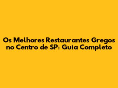 Os Melhores Restaurantes Gregos no Centro de SP: Uma Seleção Detalhada