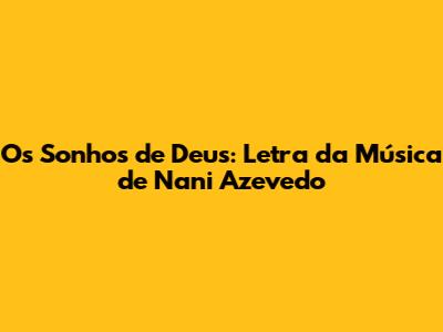 Hey guys! Today, let's dive deep into the beautiful and inspiring lyrics of Nani Azevedo's song, "Os Sonhos de Deus" (The Dreams of God). This song is more than just a tune; it’s a powerful message of faith, hope, and divine purpose. Knowing the lyrics can help you connect with the song on a deeper level, allowing its message to truly resonate with your heart and soul. So, grab your headphones, open your heart, and let’s explore the heartfelt words of this amazing song!