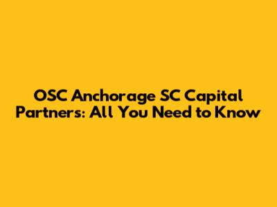 OSC Anchorage SC Capital Partners: All You Need To Know