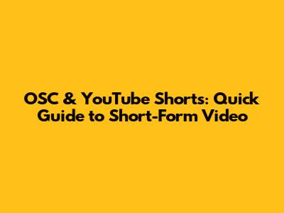 OSC & YouTube Shorts: Quick Guide To Short-Form Video
