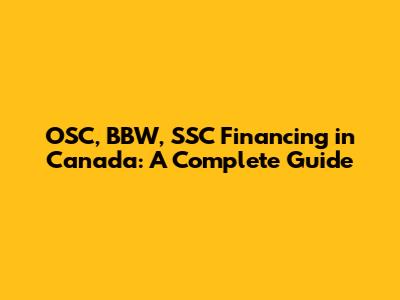 OSC, BBW, SSC Financing In Canada: A Complete Guide