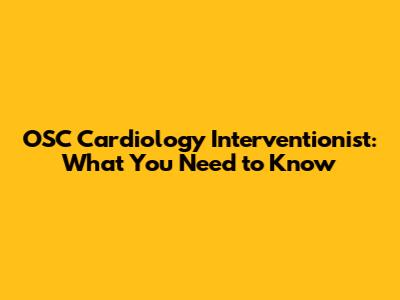 OSC Cardiology Interventionist: What You Need To Know