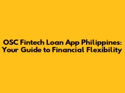 OSC Fintech Loan App: Your Philippine Loan Solution