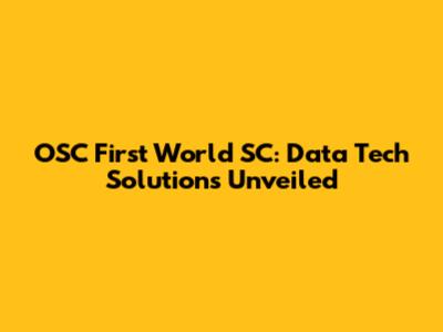OSC First World SC: Data Tech Solutions Unveiled