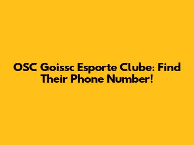 OSC Goissc Esporte Clube: Find Their Phone Number!