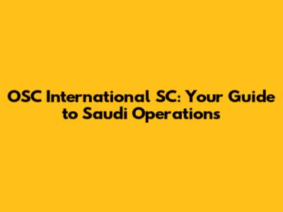 OSC International SC: Your Guide To Saudi Operations