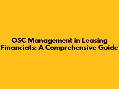 Hey guys, let's dive into the fascinating world of OSC (Operating System and Control) management within the realm of leasing financials. This stuff is super important, especially if you're involved in any way with leasing, whether it's as a business owner, a financial analyst, or just someone curious about how the money game works. We're going to break down everything you need to know about OSC management, making sure you understand the core concepts and how they apply to the financial side of leasing.
